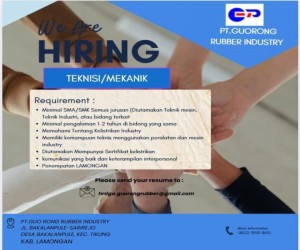 PT. GUORONG RUBBER INDUSTRY Kualifikasi: Minimal SMA/SMK Semua Jurusan (Diutamakan...