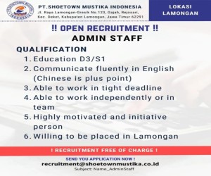 Read MoreKualifikasi: Pendidikan D3/S1 Fasih berbahasa Inggris (Bahasa Mandarin merupakan nilai...