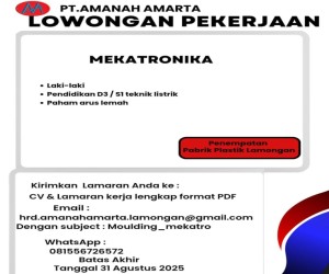 Read MoreMEKATRONIKA Kualifikasi: Laki-Laki Pendidikan D3 / S1 teknik listrik Paham...